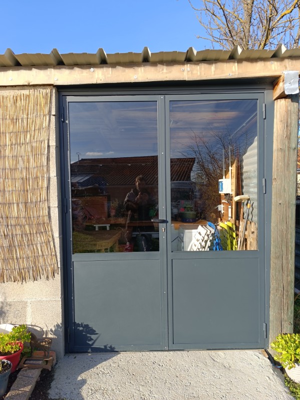 Sur ce chantier situé à Champdieu, près de Montbrison (42), nous avons réalisé sur mesure la fabrication et la pose d’une porte double vitrée pour fermer et sécuriser une remise.